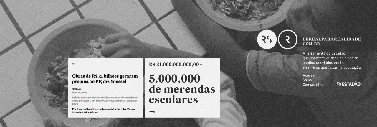 A tool that converts the amount of money (Brazilian Real - R$) evaded in the corruption scandals reported by Estadão Newspaper on its website into products and basic public services that are collapsing in Brazil.